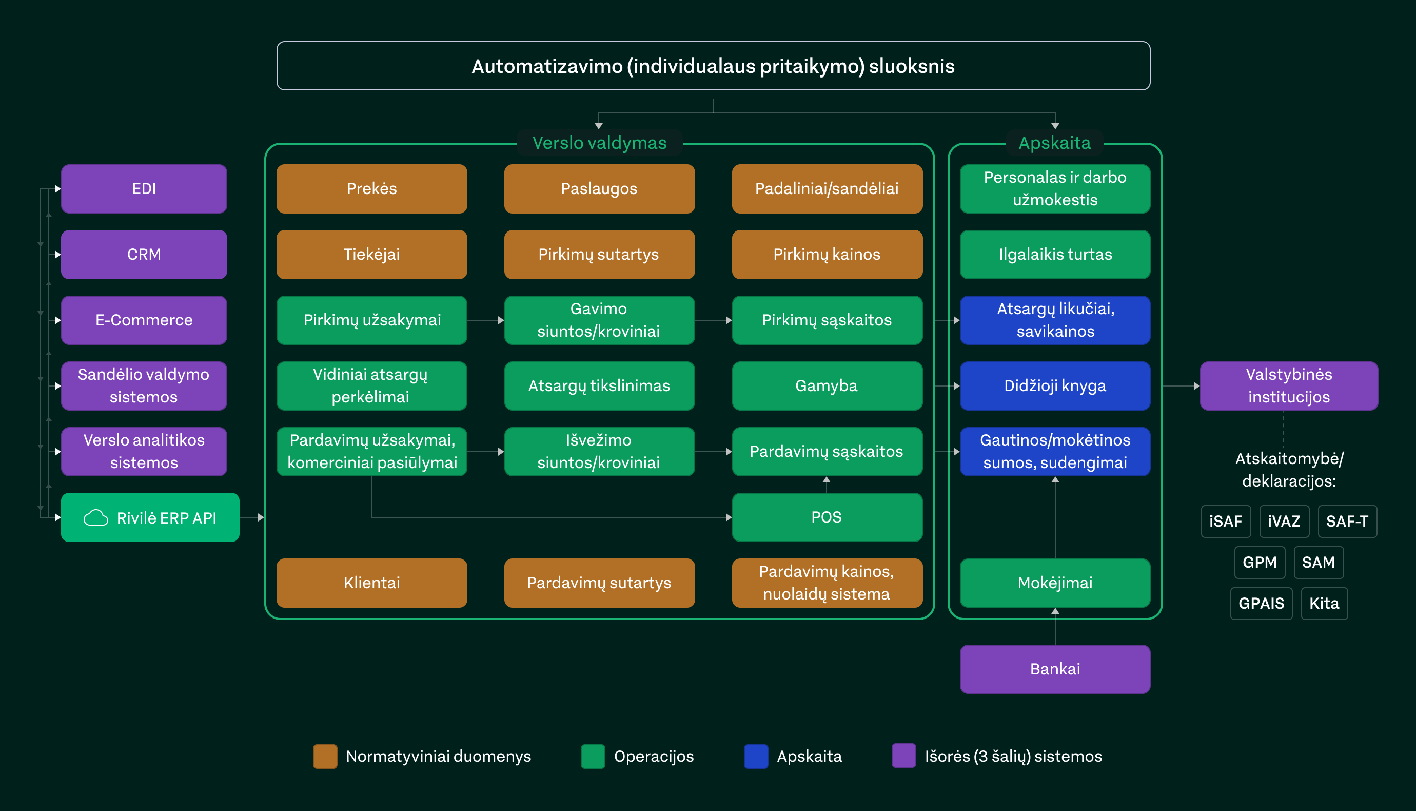 Patobulinkite verslo procesus ir efektyvinkite darbą su išorinių sistemų integracijomis. Automatizuokite duomenų mainus, sumažindami rankinio darbo kiekį ir išvengdami klaidų.